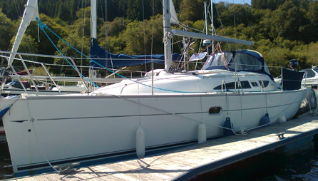 PepePepe is a very well equipped Jeanneau 32 which joined us in late 2011. She has a conventional two cabin layout which makes her ideal for family groups or up to five adults (six if one is small!), although we would recommend four as a sensible limit for charters of a week or more. On deck Pepe has an electric anchor windlass and a very large cockpit for a boat of her size. She has conventional roller furling genoa and in-mast reefing for the mainsail, whilst under power she is pushed along by a Volvo 20hp engine connected to a two bladed propeller. Steering is by wheel, and she has an autopilot at the helm as well as full instrumentation in the cockpit. Pepe has the popular two cabin layout complimented by a good sized heads and shower with hot water coming from both the engine and also shore-power when available. The galley is of a good size and lies to starboard; two burner cooker and oven accompanied by a good sized fridge. Immediately forward of the galley is the chart table area where both radar and chartplotter (independent systems) are located. Like all or boats she comes equipped with a tender and outboard, and is fully coded to MCA requirements. This means that she has a full compliment of safety equipment on board, including lifejackets and harnesses, liferaft, flares and first aid kits, as well as a range of automatic and manual fire extinguishers. She is also equipped with a large folio of Admiralty charts, pilots and almanac, together with an on-board manual and supporting literature, and warm air heating for the main domestic cabins.